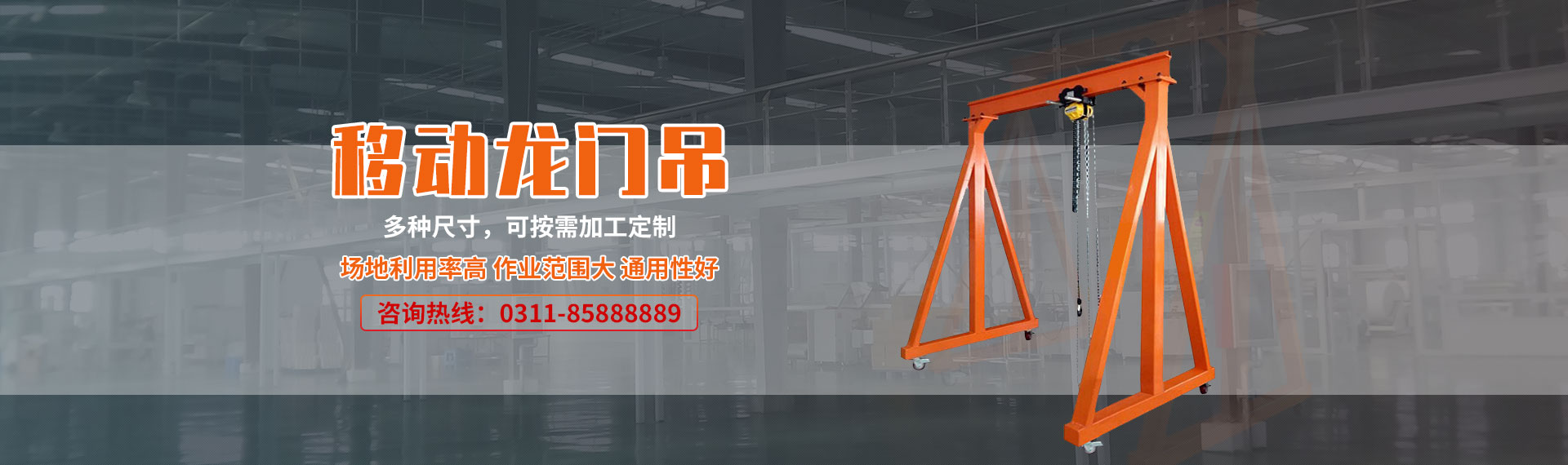小型龍門吊架(簡易移動龍門起重機)廣泛應用于港口、電力、鋼鐵、造船、礦山、鐵路、冶金、石油化工、汽車制造、大件運輸、海洋工程、基礎建設等重要行業(yè)以及基礎建設工程的機械設備。